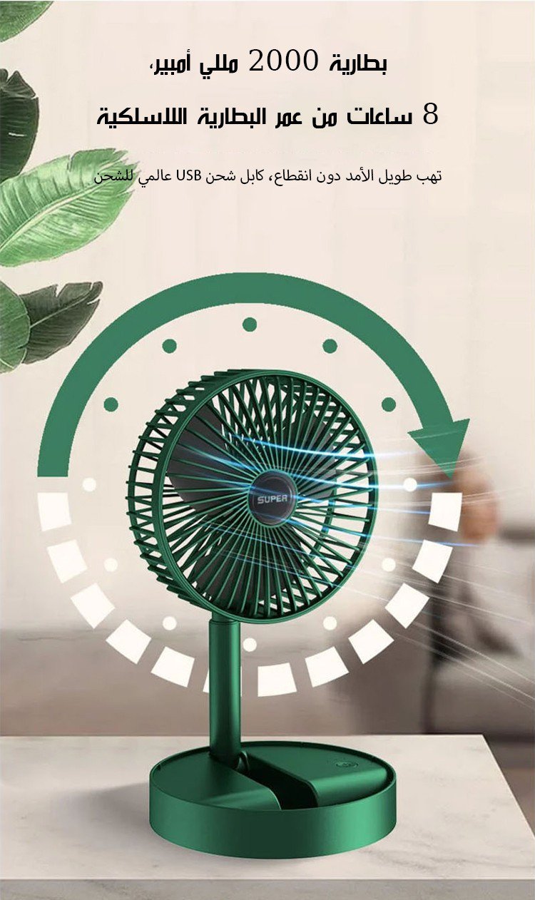بطارية عالية السعة 2000 مللي أمبير، 3 مستويات من الرياح، صامتة تمامًا